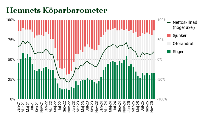 Hemnets Köparbarometer december 2025: Färre bostadsköpare tror på prisfall